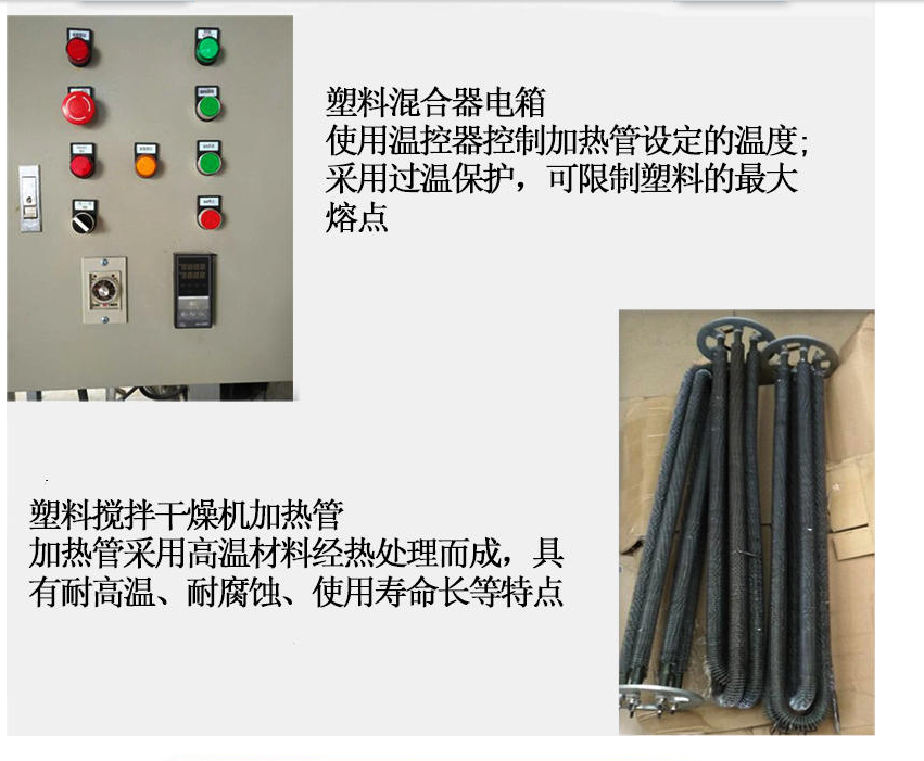 8、干燥混合功能二合一,但不需要干燥時,只需將“加熱開關(guān)”及“風(fēng)機開關(guān)”關(guān)閉,本系列機型即可用于塑料攪拌均化用途,一機二用;